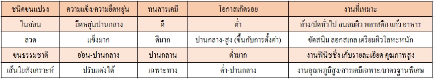 ตารางรูปทรงของแปรงกับลักษณะการใช้งานในอุตสาหกรรมยานยนต์