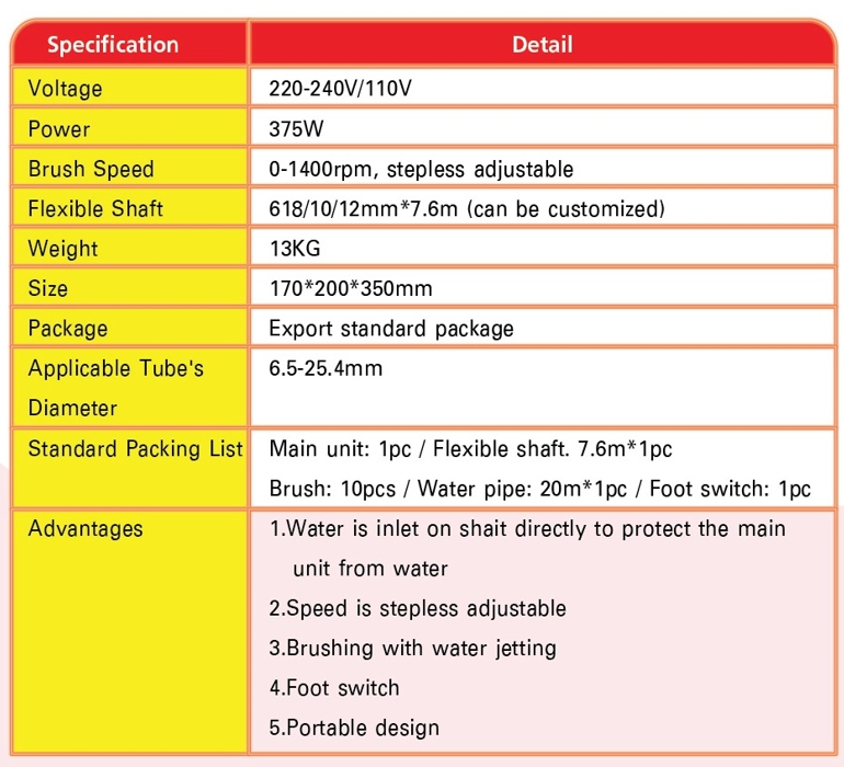 ตารางคุณสมบัติเครื่องแยงทำความสะอาดคอนเดเซอร์