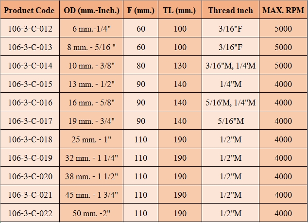 ตารางขนาดแปรงแยงท่อตูดมีเกลียวขนไนล่อน